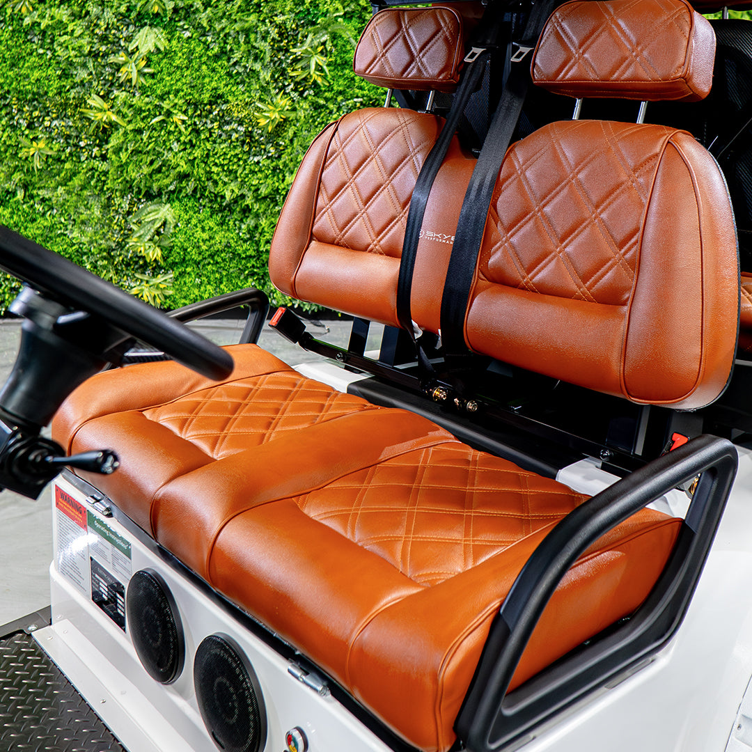 At Skye Performance, we offer a range of customized features to elevate your ride to the next level. Enjoy the luxury of leather seats designed for comfort and style, paired with a 10.1” media display featuring Bluetooth connectivity for an immersive experience on the go. With a convenient push-start function, getting started is as effortless as it gets. Whether you need a 2-seater or a 6-seater, we have options to suit your needs. Plus, our carts come equipped with a golf bag holder, making them perfect for both leisure drives and hitting the links. Tailor your ride with Skye Performance for an unparalleled combination of performance and personalization.