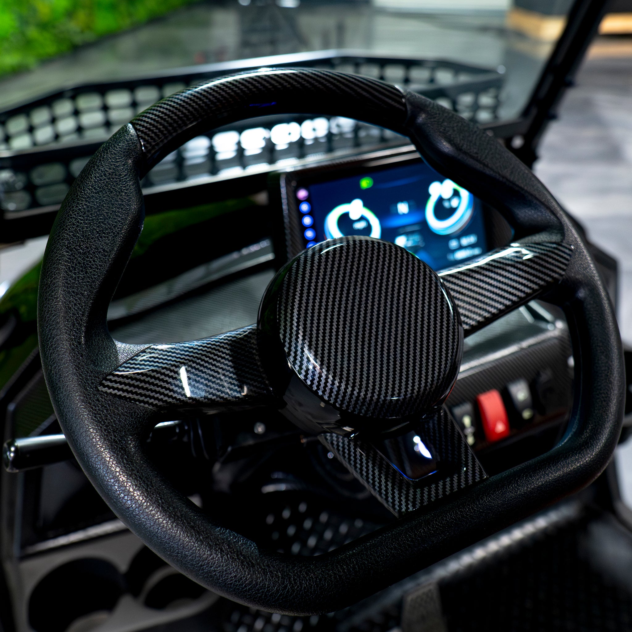 The Skye Performance Bolt XL 6-seater golf cart in Shadow Black blends power and luxury with a 7.5kw motor, 72v/240ah lithium battery, and 96-mile range. Its lightweight aluminum frame and dual A-arm suspension ensure exceptional handling and comfort. Features include 14" aluminum wheels, a Bluetooth sound system with 4x5" speakers and subwoofer, and carbon fiber dash, seat backs, and steering wheel. Street-legal ready, assembled in the USA, and backed by a lifetime warranty, our carts redefine excellence wherever your adventure takes you.